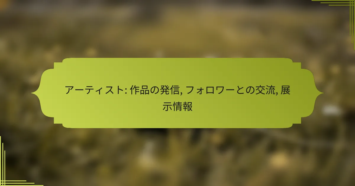 アーティストは、作品を効果的に発信するために多様な方法を活用し、ターゲットオーディエンスに応じたプラットフォームを選ぶことが重要です。また、フォロワーとの交流を深めるためには、効果的なコミュニケーションとインタラクションが不可欠です。展示情報は、アートイベントやギャラリーの公式サイト、SNSを通じて簡単に見つけることができます。