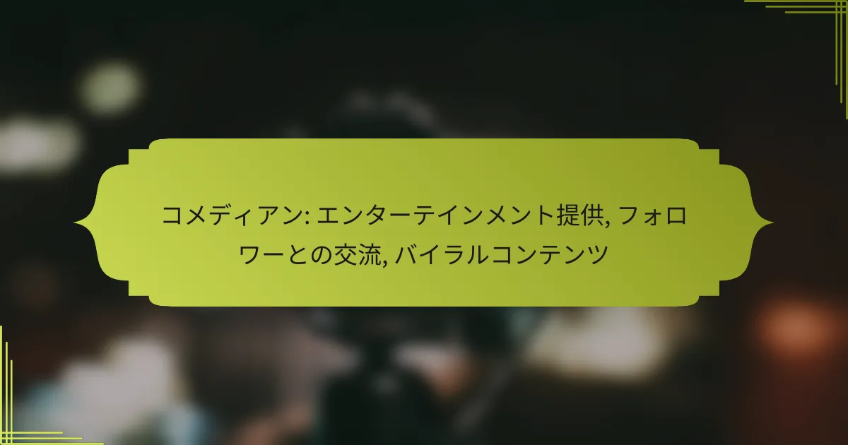 コメディアンは、観客を楽しませるためにユーモアを駆使し、笑いを提供するエンターテイナーです。ライブパフォーマンスやデジタルコンテンツを通じて、フォロワーとの交流を深めることが重要であり、ソーシャルメディアを活用することで、より多くの支持を得ることができます。