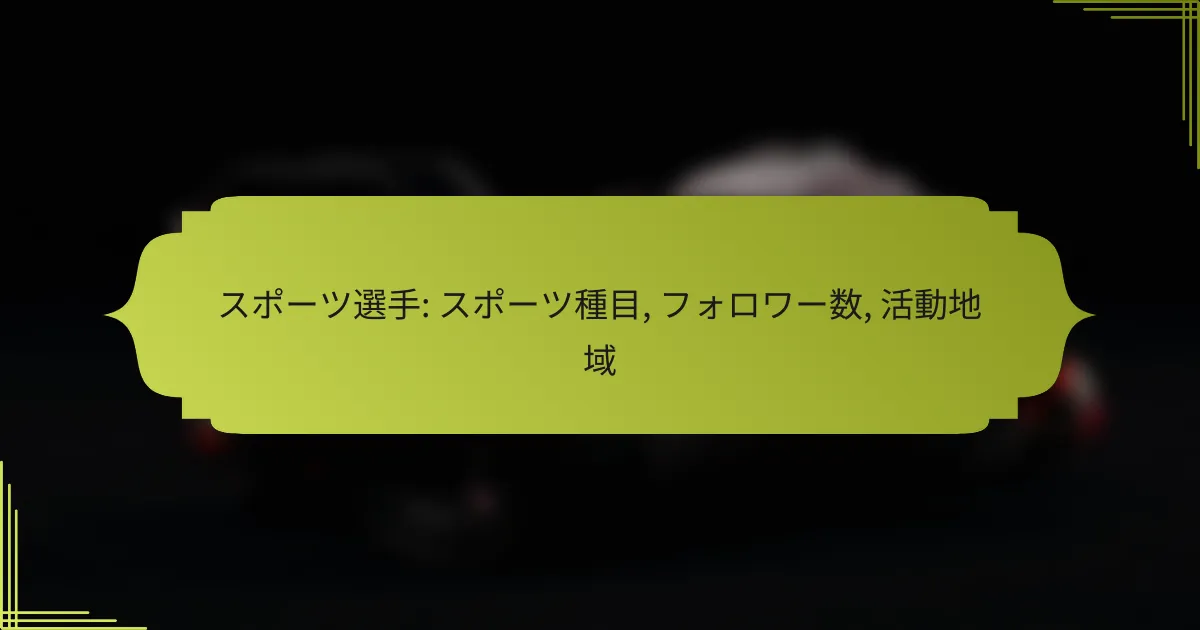 スポーツ選手は、特定のスポーツで競技を行い、技術や体力を駆使して成果を上げる人々です。彼らは個人競技や団体競技で活動し、地域やスポーツ種目によって異なる人気を持っています。また、選手のフォロワー数は、ソーシャルメディア上での影響力を示す重要な指標となります。
