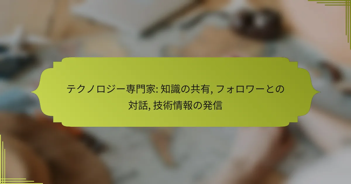 テクノロジー専門家は、様々な手段を通じて知識を共有し、フォロワーとの対話を促進します。これにより、専門的な情報を広め、コミュニティの理解を深めることができます。