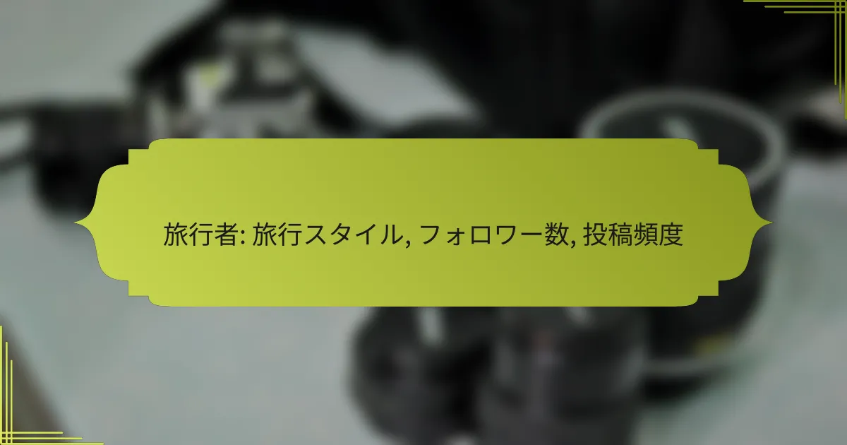 旅行者の旅行スタイルは、目的や方法、体験の仕方を反映し、個々の旅の選択に影響を与えます。フォロワー数はその影響力を示し、多くの人々と情報を共有する機会を増やします。また、投稿頻度はフォロワーとの関係を深めるために重要で、質と量のバランスを取ることが求められます。